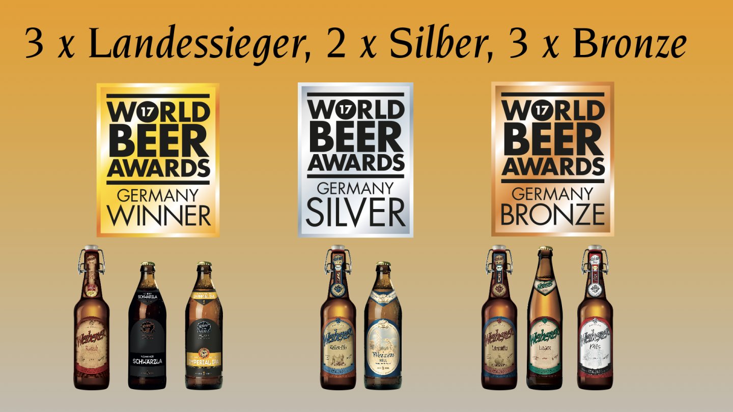 Die World Beer Awards in London gehören zu den größten internationalen Branchenwettbewerben überhaupt. Dass insgesamt 8 Weiherer Biere hier Medaillen holten, macht die Geschäftsführer Oswald und Roland Kundmüller sehr stolz: "Wir schäumen geradezu vor Glück!"