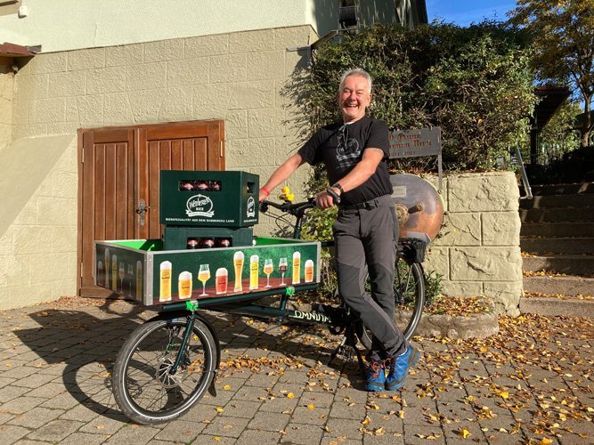 Erhard Georg ist Lastenradbesitzer. Das ist an sich nichts Außergewöhnliches, hat das schwere Zweirad mittlerweile aus Nachhaltigkeitsgründen Einzug in unsere Gesellschaft gehalten. Doch Erhard Georg hat mittlerweile ein Weiherer Bier-Lastenrad. Und das gibt es so kein zweites Mal.