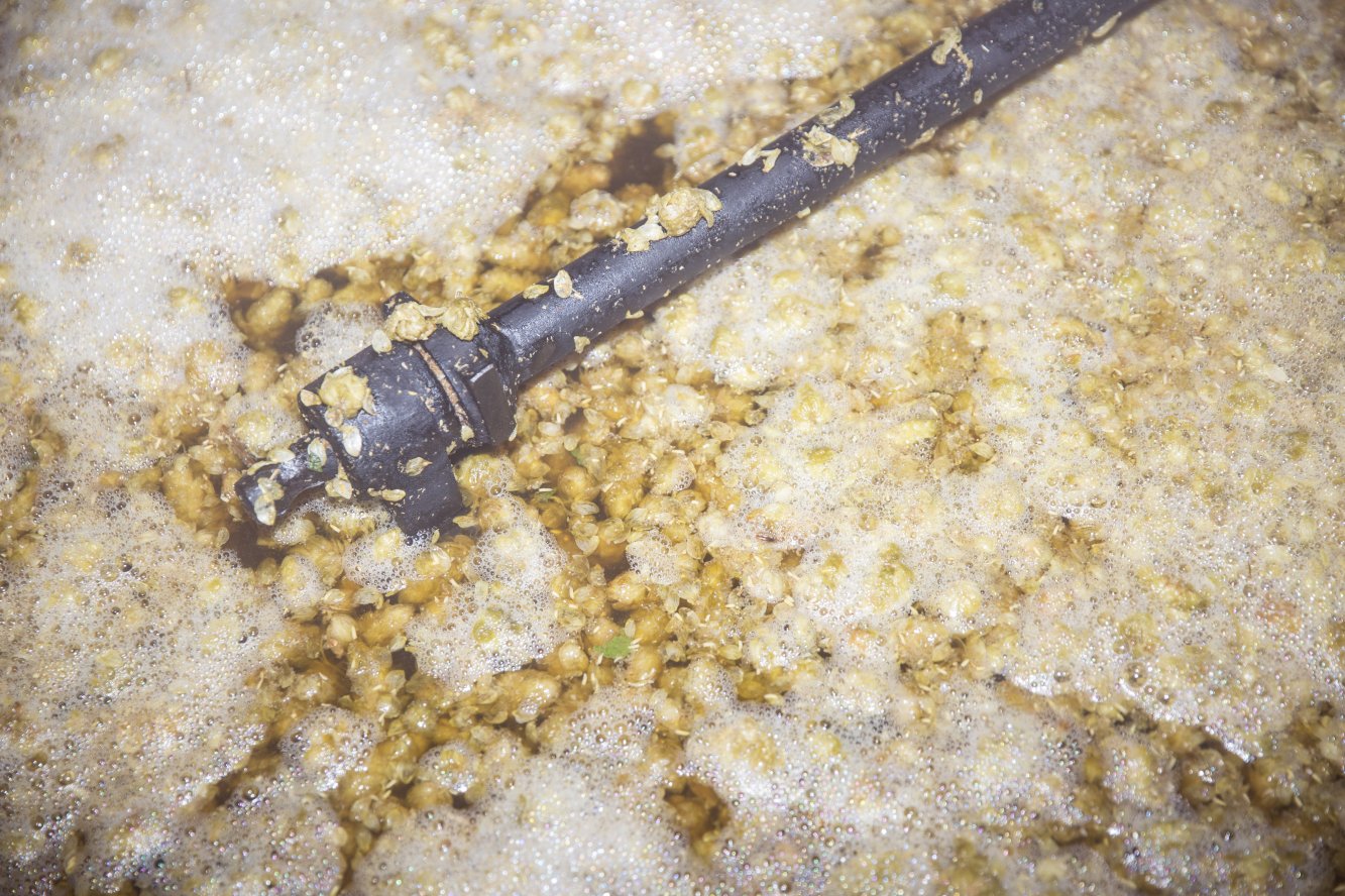 Morgens um 7.30 Uhr starteten Cole und Kundmüller mit dem Einmaischen. Das Rezept für das Imperial IPA hatten beide zuvor im Detail via Mail abgesprochen. „Nachdem Matt mit seinem ‚Hop Juju‘ in diesem Jahr eine Goldmedaille beim härtesten Bierwettbewerb der Welt, dem World Beer Cup gewonnen hat, schlug er vor, eine fränkische Variante davon zu brauen. Die Idee fanden wir natürlich super, da es trotz gleichen Rezepts spannend ist, wie sehr sich die Biere letztlich gleichen oder unterschieden“, erklärt Roland Kundmüller. Die Hopfen hierfür hat Cole teils direkt aus Amerika mitgebracht. Bei der Hopfengabe hatten sich dann auch bereits mehrere Gäste, darunter auch die Bayerische Bierkönigin Sabine-Anna Ullrich hinzugesellt.