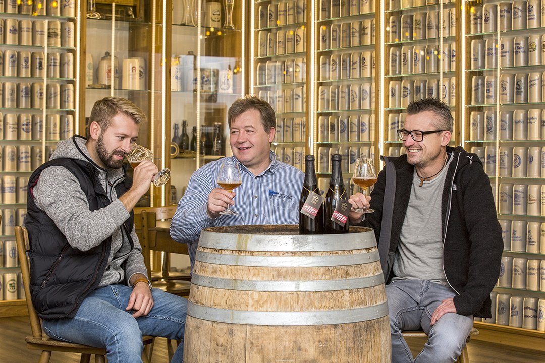 Die Brauerei Kundmüller, Weiher und das Weingut Wagner, Staffelbach liegen nur sieben Kilometer auseinander. Man kennt und schätzt sich. Der Brauer den Winzer und umgekehrt. Als Oswald Kundmüller an einem Sommerabend im vergangenen Jahr die benachbarte Heckenwirtschaft der Wagners auf einen Feierabend-Schoppen besuchte, kam ihm eine Idee: „Warum nicht in außergewöhnlicher Weise Wein und Bier verbinden, gerade bei solcher regionalen Verbindung und Wertschätzung?“ Bereits zu dieser Zeit lagerten er und sein Bruder und Braumeister Roland Kundmüller Biere in verschiedenen Fässern, besondere Spezialitäten, ganz innerhalb der Möglichkeiten des Reinheitsgebotes. Die Wagner-Weine kommen dazu aus dem östlichsten Anbaugebiet Frankens und erfreuen sich vieler Liebhaber.