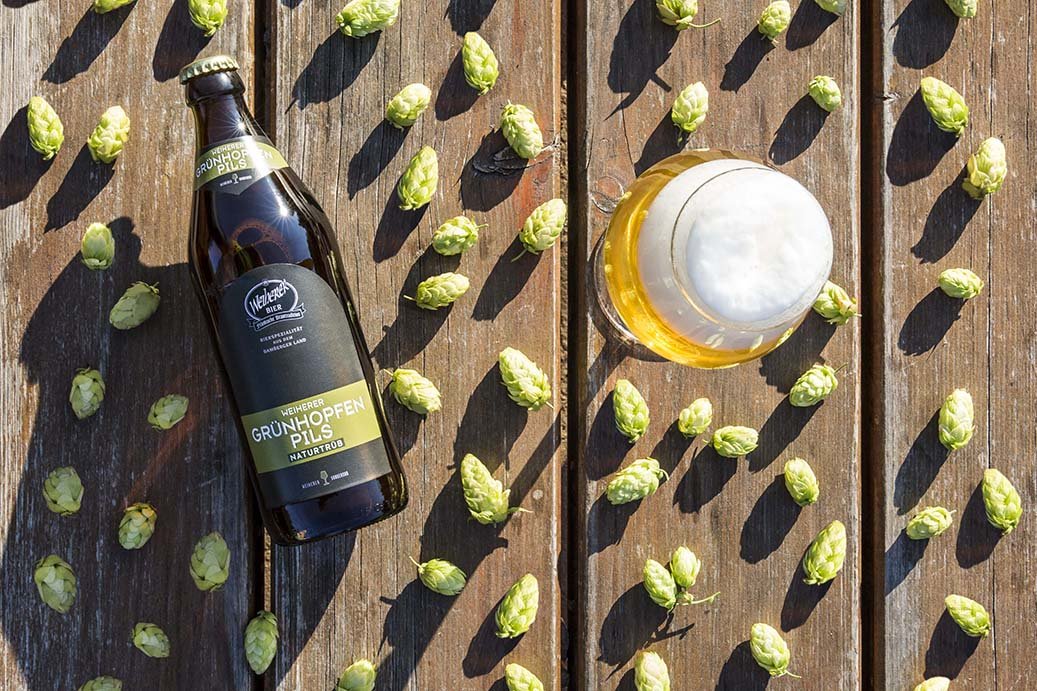 Nun ist das Ergebnis fertig: Das naturtrübe Weiherer Grünhopfen-Pils besticht durch seine feinen, grasig-grünen Noten. Dazu eine leichte, keinesfalls zu stark ausgeprägte Bittere mit fränkischem Pils-Charme. Wir empfehlen dies nicht nur Hopfen-Liebhabern.