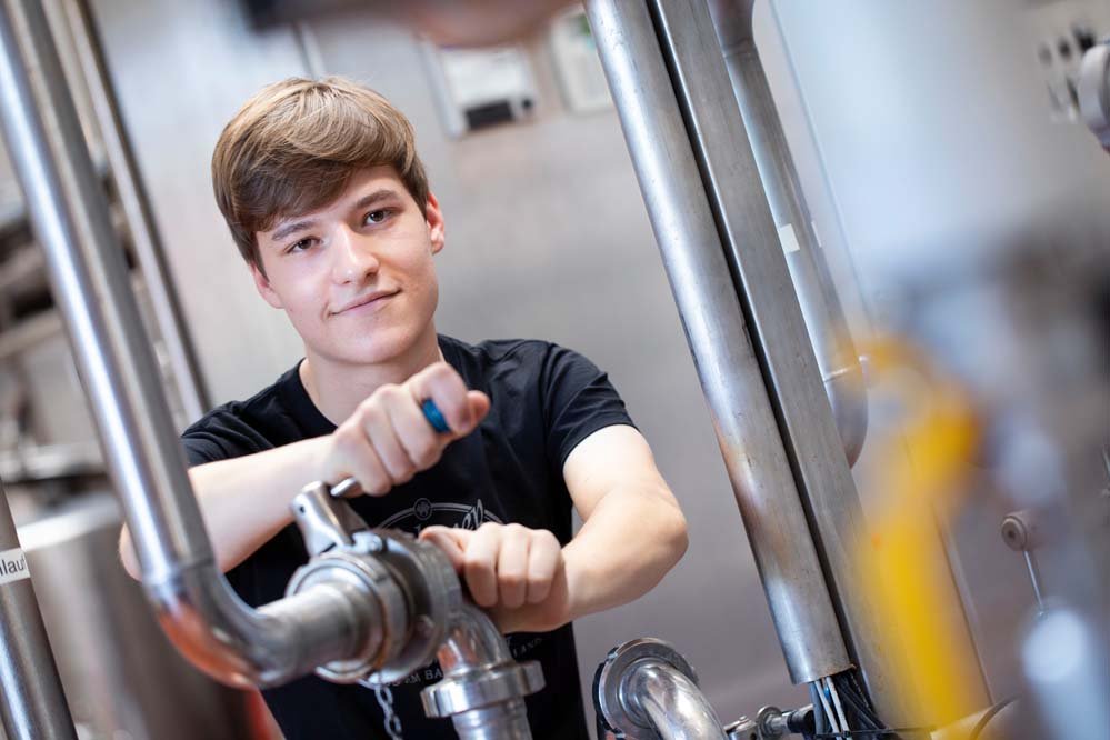 Unser zweiter Azubi ist der 18-jährige Johannes. Auch er ist ein Franke, kommt ursprünglich aus dem 70 Kilometer entfernten Possenheim. Für eine Ausbildung zum Brauer hat er sich aus einem ganz einfachen Grund entschieden: "Bier ist meine Leidenschaft geworden." Das Feuer entfacht hat ein Bierbrau-Seminar in der Schule, seitdem braut er mit seinen zwei Brüdern daheim im Einkocher. Jetzt lernt er das Knowhow, um auch in einem richtigen Sudkessel bestes Bier zu kreieren - mit Wissen, Spaß und weiterhin viel Leidenschaft.