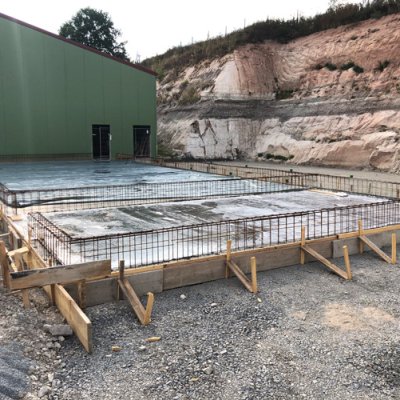 Stück für Stück zeigt sich das neue Gesicht der künftigen Brauerei. Von August bis Oktober 2019 wurde die Schalung für den neuen Anbau (neues Sudhaus) aufgebaut. Es müssen Abwasserkanäle gelegt, Gullys gesetzt und das Fundament gegossen werden.
