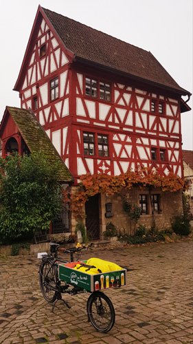 Als die neue Box fertig war, kam Erhard dann mit seiner ganzen Familie nach Weiher zum Bockbieranstich - natürlich mit im Gepäck: das Lastenrad (und auch das seiner Frau Anja.) Zusammen mit dem Weiherer Team feierten sie daraufhin das schöne Rad und die frischen Böcke. Während Tochter Jana und ihr Verlobter Lupo dann noch ein paar Tage in Weiher blieben, machten sich Erhard und seine Frau auf den Rückweg mit den Rädern. Ganze 715 Kilometer sind es von Weiher nach Kerpen. Das Ankunftsbier hatten sich beide dann redlich verdient.
