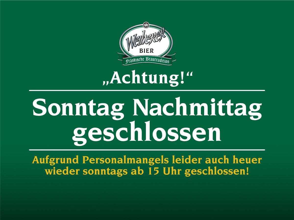 Leider müssen wir auch heuer aufgrund von Personalmangel ab sofort Sonntag ab 15 Uhr schließen. Wir sind darüber sehr traurig, aber es wird immer schwieriger, Personal zu finden - gerade für die Wochenenden. Wenn ihr Interesse habt, unser Team zu bereichern und in der Küche, im Service oder als Zimmermädchen in Vollzeit, Teilzeit oder auf Minijob-Basis zu arbeiten, dann meldet euch bei uns! Entweder per Mail an personal@brauerei-kundmueller.de oder telefonisch unter 09503/5000401.