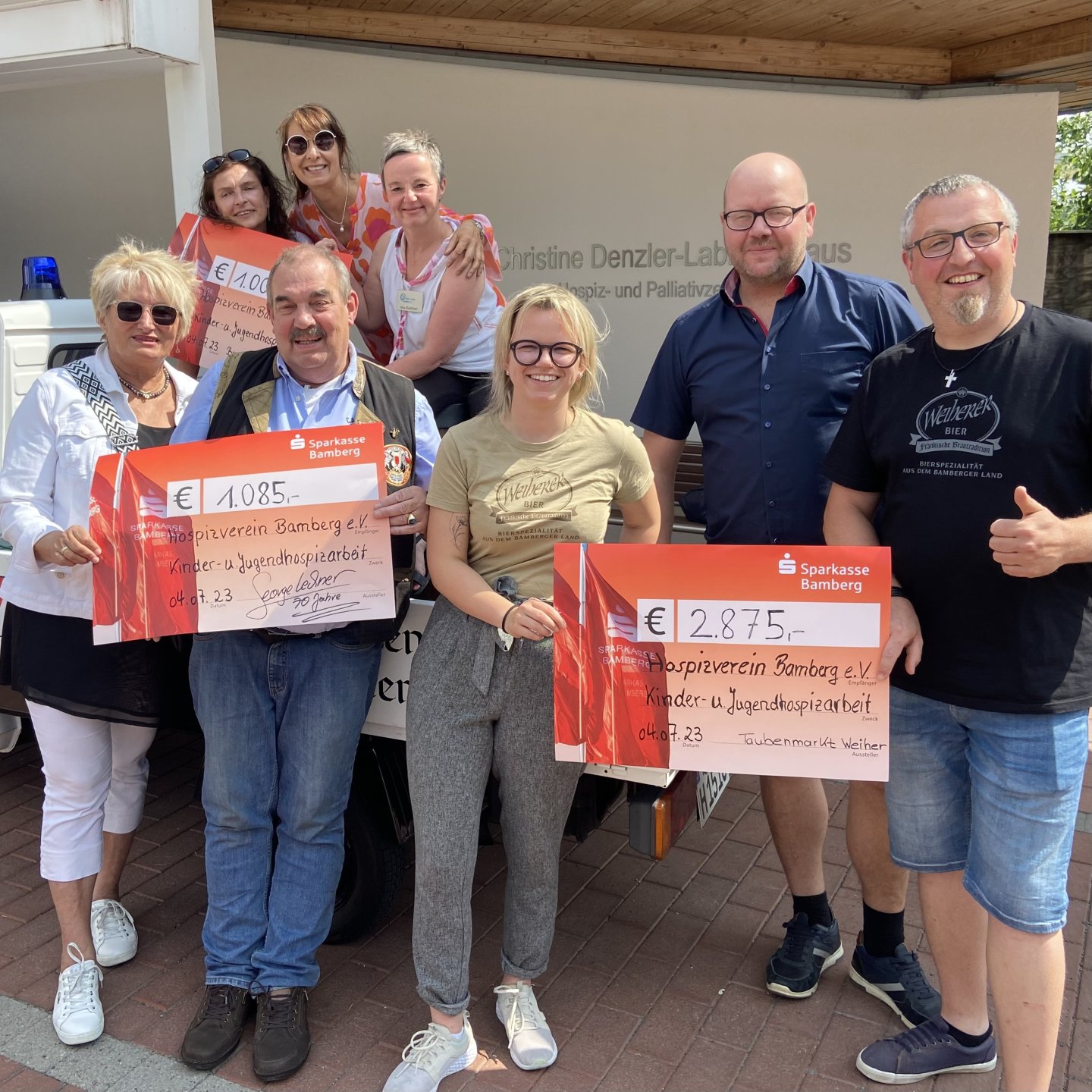Wir freuen uns mega, dass wir erneut die Kinder- und Jugendhospizarbeit in Bamberg unterstützen konnten! Am 4. Juni fand die Scheckübergabe von gleich 3 Spendenaktionen statt. Andreas Nüsslein mit seinem Taubenmarkt-Team hat bei den beiden Veranstaltungen in unserem Brauerei-Gasthof insgesamt 2.875 EUR erzielt. Georg Lechner, der historische Braumeister, feierte im Mai bei uns seinen 70. Geburtstag. Anstelle von Geschenken gab es auf seinen Wunsch Spenden für das Kinderhospiz und es sind sage und schreibe 1.085 EUR zusammengekommen. Und zu guter Letzt haben wir am 1. Juni für den 1. Toy Run in Bamberg 1.000 EUR gespendet. Wir freuen uns wirklich sehr, einen Beitrag für eine so wichtige Sache leisten zu können. Liebes Team vom Hospizverein, vielen Dank für eure großartige Arbeit und für euer Engagement! Wir haben im Anschluss an die Scheckübergabe noch eine beeindruckende Führung durch die neuen Räumlichkeiten gemacht und waren sehr berührt. Falls auch ihr spenden möchtet, schaut mal hier: https://hospizverein-bamberg.de/unterstuetzung/index.html.