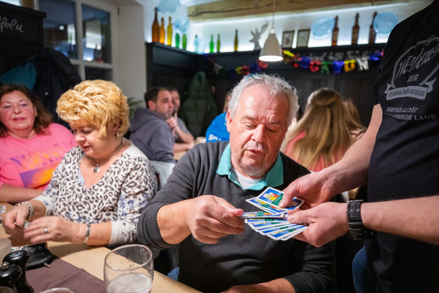 Auch in diesem Jahr hieß es in Weiher wieder "Karten ziehen für den guten Zweck". Am 6. März und am 3. April jeweils ab 18 Uhr fanden die beiden diesjährigen Taubenmärkte zu Gunsten des Kinder- und Jugendhospizes in Bamberg statt. Andreas Nüsslein, Hauptorganisator der Veranstaltung, verkauft bei den Taubenmärkten zusammen mit seinem Team 36 Karten Fränkisches Blatt für je 1,50 EUR pro Stück an die Gäste. Eine Glücksfee zieht aus einem neuen Blatt eine Karte und derjenige, der diese Karte im vorherigen Spiel gekauft hat, ist der Gewinner! Zu gewinnen gab es keine Tauben und auch sonst keine lebenden Tiere wohl aber selbstgebackene Torten, hausgemachte Spezialitäten, Naschkörbe und natürlich Bier. Die Stimmung war wie immer grandios, nicht zuletzt dank der musikalischen Umrahmung durch M & M - einfach aufg'spielt und Thomas Datscheg.