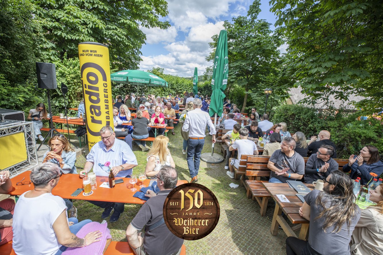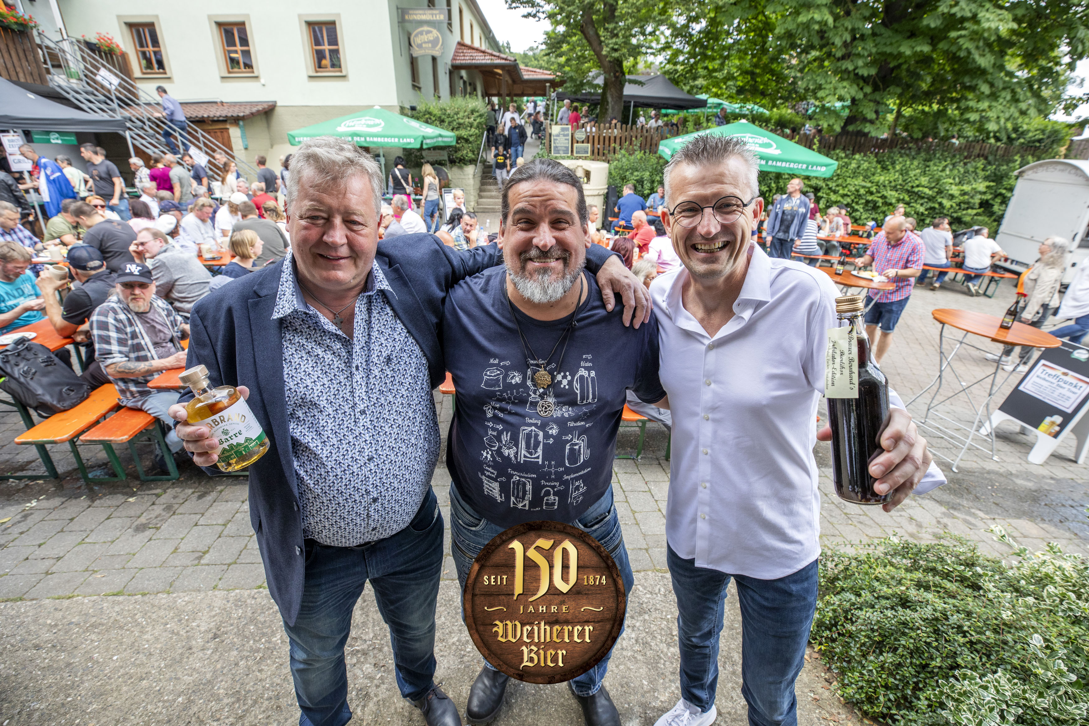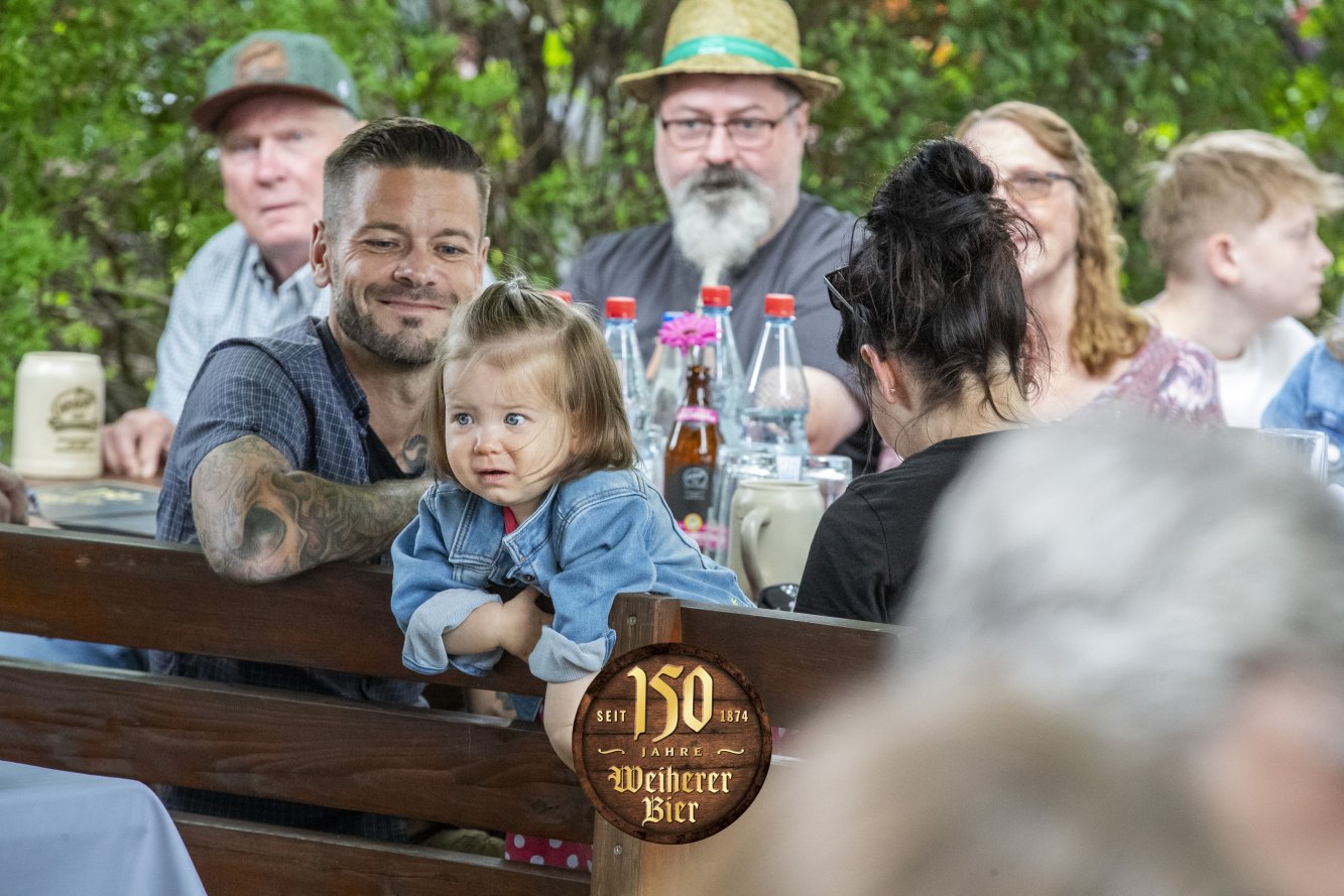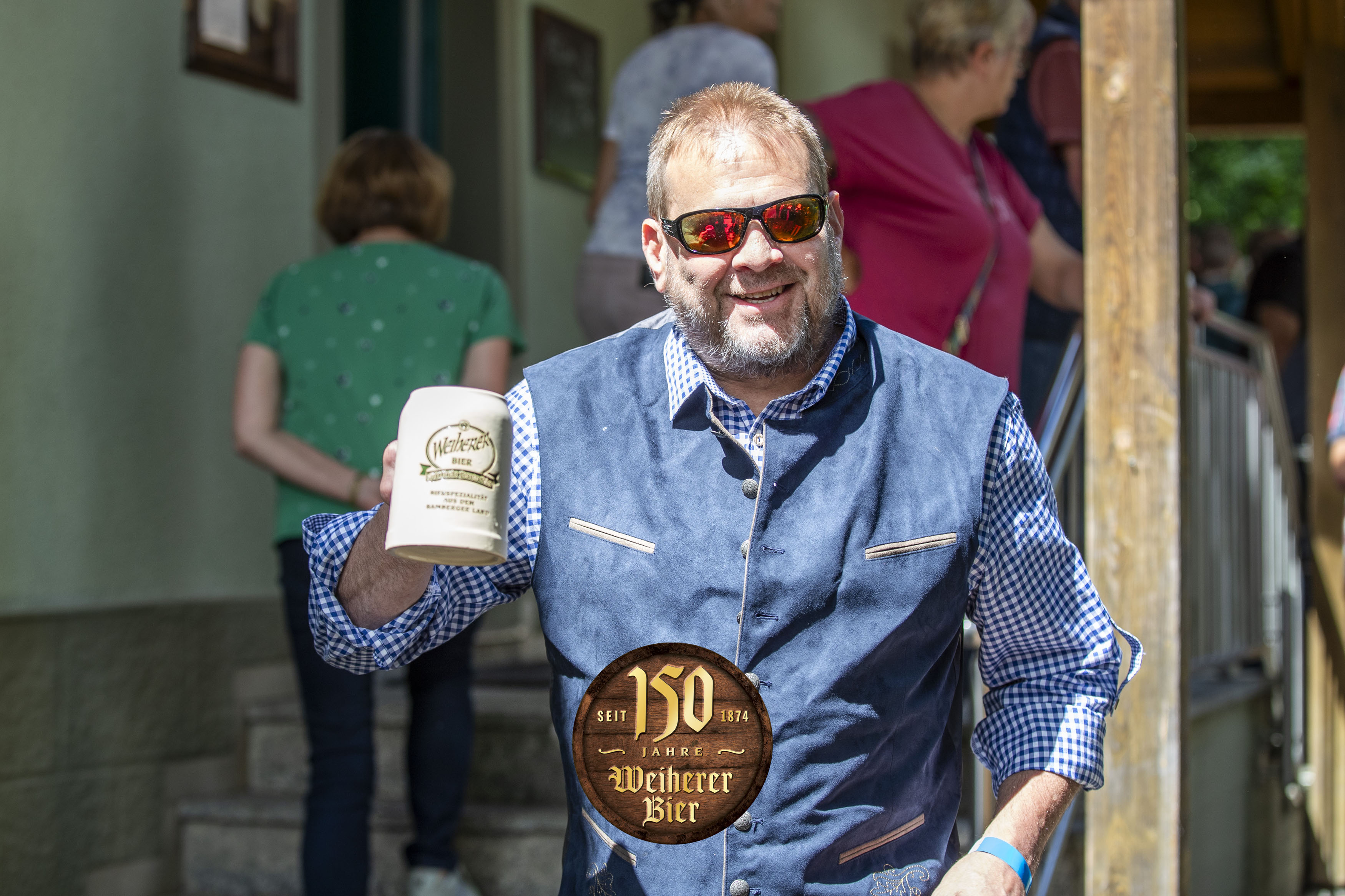 150 Jahre Weiherer Bier – was für ein Jubiläum und was für ein Fest! Unglaublich wie viele Bierfreunde vom 14. bis 16. Juni zu uns nach Weiher gekommen sind, um das große Jubiläum mit uns zu feiern. Stammgäste, Ehrengäste, Kunden, Freunde und Collaboration-Partner von nah und fern reisten an und erlebten ein spektakuläres Wochenende. Schon zum Start am Freitag war der Wettergott gnädig. Regnete es fast die ganze Woche, so spitzte bereits am ersten Festtag abends die Sonne durch die Wolken. Die ersten Gäste reisten bereits kurz vor dem Wochenende an. Allen voran die Collaboration-Partner aus Übersee, Matt Cole von der Fat Head's Brewery in Cleveland, Ohio und Alexandre Bazzo von der Cervejaria Bamberg aus Brasilien, die mit Freunden und Familie über mehrere tausend Kilometer zu uns nach Weiher kamen. Diese waren es auch, die gemeinsam mit dem Duo „M&M“ unseren Brauereihof stimmgewaltig mit Gesang füllten. Nicht nur das bekannte „Prosit“ schallte mehrmals, auch deutsche und internationale Volkslieder wurden – mehr oder weniger textsicher – gemeinsam gesungen. Ein Auftakt nach Maß!