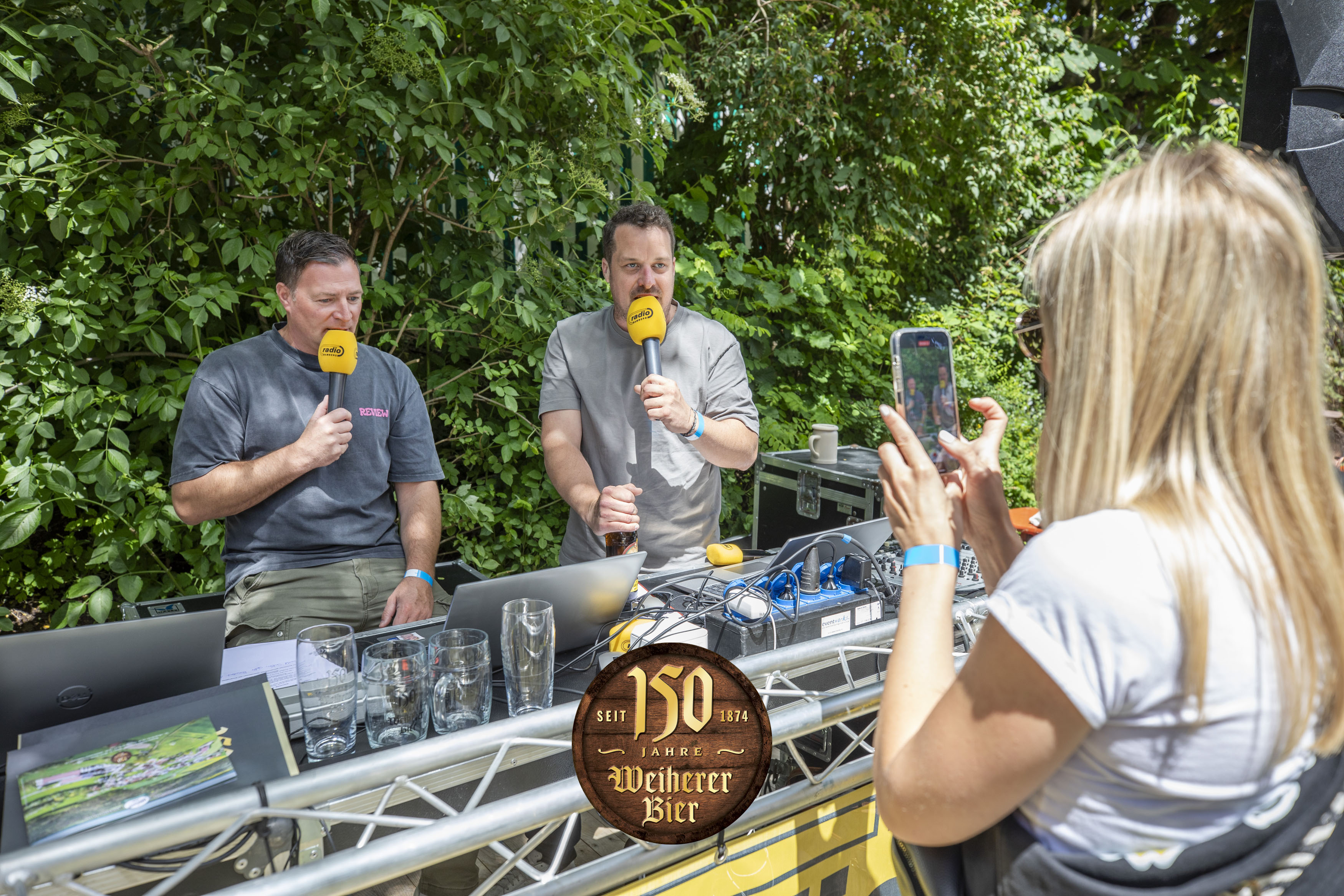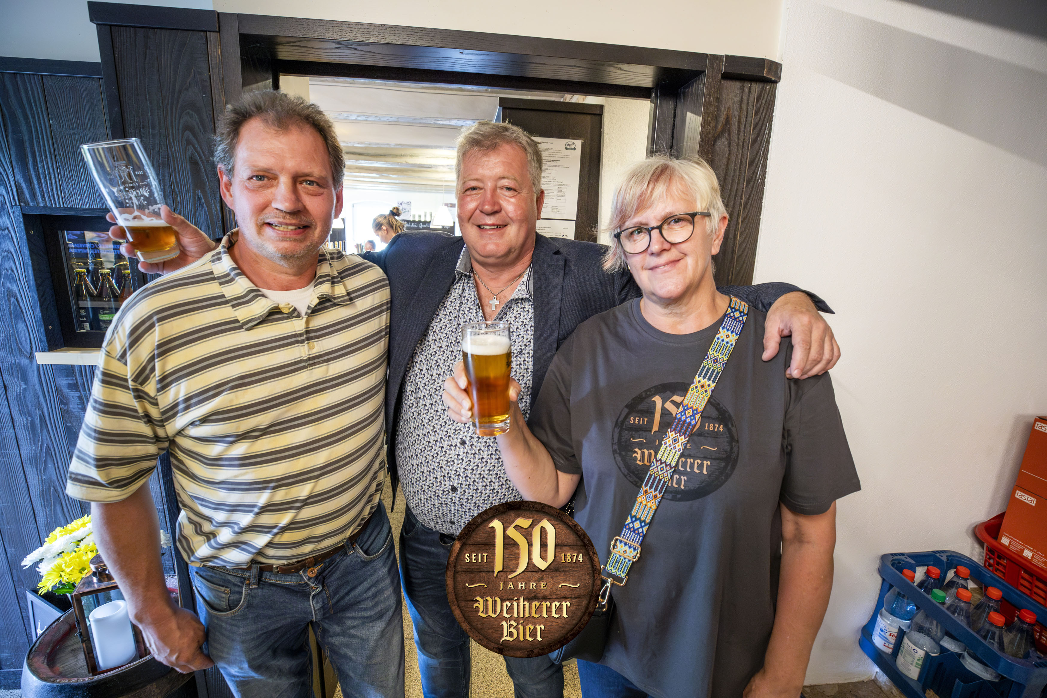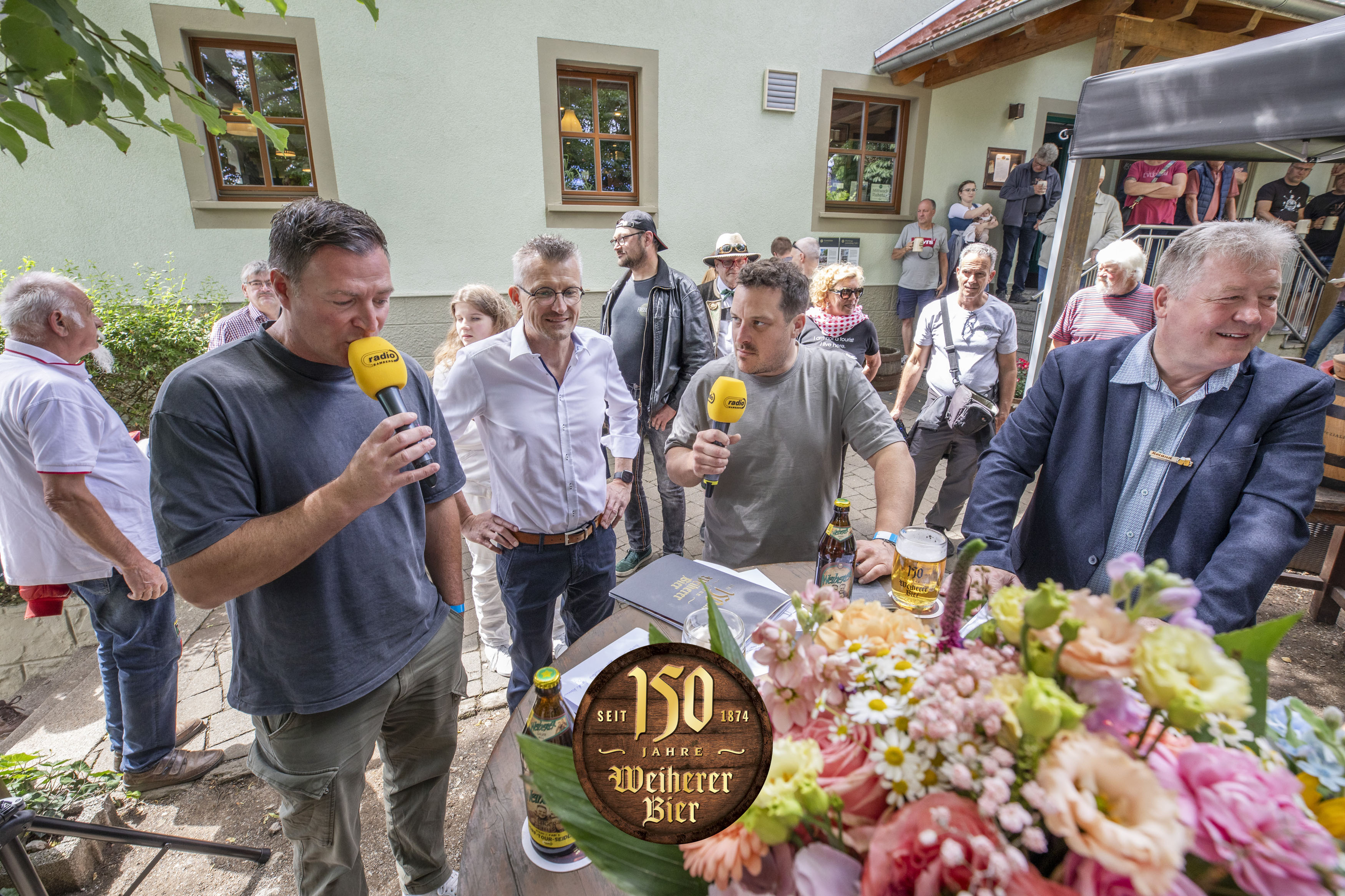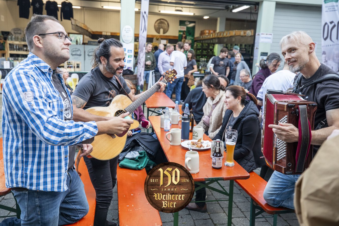 150 Jahre Weiherer Bier – was für ein Jubiläum und was für ein Fest! Unglaublich wie viele Bierfreunde vom 14. bis 16. Juni zu uns nach Weiher gekommen sind, um das große Jubiläum mit uns zu feiern. Stammgäste, Ehrengäste, Kunden, Freunde und Collaboration-Partner von nah und fern reisten an und erlebten ein spektakuläres Wochenende. Schon zum Start am Freitag war der Wettergott gnädig. Regnete es fast die ganze Woche, so spitzte bereits am ersten Festtag abends die Sonne durch die Wolken. Die ersten Gäste reisten bereits kurz vor dem Wochenende an. Allen voran die Collaboration-Partner aus Übersee, Matt Cole von der Fat Head's Brewery in Cleveland, Ohio und Alexandre Bazzo von der Cervejaria Bamberg aus Brasilien, die mit Freunden und Familie über mehrere tausend Kilometer zu uns nach Weiher kamen. Diese waren es auch, die gemeinsam mit dem Duo „M&M“ unseren Brauereihof stimmgewaltig mit Gesang füllten. Nicht nur das bekannte „Prosit“ schallte mehrmals, auch deutsche und internationale Volkslieder wurden – mehr oder weniger textsicher – gemeinsam gesungen. Ein Auftakt nach Maß!