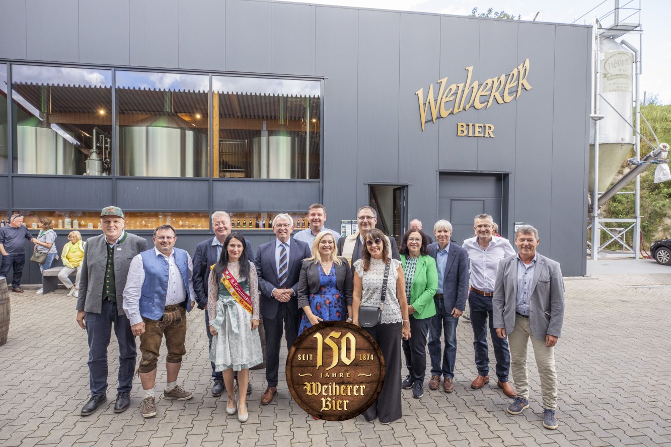 Der wohl imposanteste Festtag war dann der Samstag. An diesem, wie an allen anderen Tagen, kamen die kleinen Weiherer Fans bei nun schönstem Sommerwetter mit Kinder-Karussell, Hüpfburg, Glücksrad und Kinderschminken voll auf ihre Kosten. Sie interessierte es wohl noch nicht, dass unsere beiden Geschäftsführer Roland und Oswald zum Festakt ab 14:30 Uhr das „who is who“ der Politprominenz empfangen durften. Neben Landrat Johann Kalb erwiesen uns die Bundestagsabgeordneten Emmi Zeulner, Lisa Badum und Thomas Silberhorn sowie Landtagsabgeordnete Melanie Huml, der oberfränkische Regierungsvizepräsident Thomas Engel und die Bürgermeisterin der Gemeinde, Regina Wohlpart, die Ehre. In ihrer launigen, echt fränkischen Festrede sprachen Roland und Oswald vor allem die Entwicklung der Brauerei in 150 Jahren und die Familie an: Ohne den Mut und Fleiß ihrer Eltern Anni und Erwin Kundmüller wäre der Betrieb nie zu dem geworden, was er heute ist. Die beiden führten die Brauerei, die bereits 1874 von Michael Bayer mit einer Sorte Bier gegründet wurde, über 44 Jahre sehr erfolgreich und mit großer Leidenschaft, bevor sie im Jahr 2013 an die Brüder Oswald und Roland übergaben. Mittlerweile existieren 34 Biersorten, vom Klassiker wie dem Lager, bis zu ausgefallenen Sondersud-Serien, die zum Beispiel mit den Partnern aus Brasilien und den USA eingebraut werden. Besonders spannend war auch die Entwicklung des „36 Kreisla“. Das erste Landkreisbier geht auf eine Initiative von Landrat Johann „Hans“ Kalb zurück und wurde 2015 unter anderem mit uns erstmals gebraut. Der Landrat war es auch, der in seiner Rede neben den bekannten handwerklichen Leistungen die sozialen Werte hervorhob.