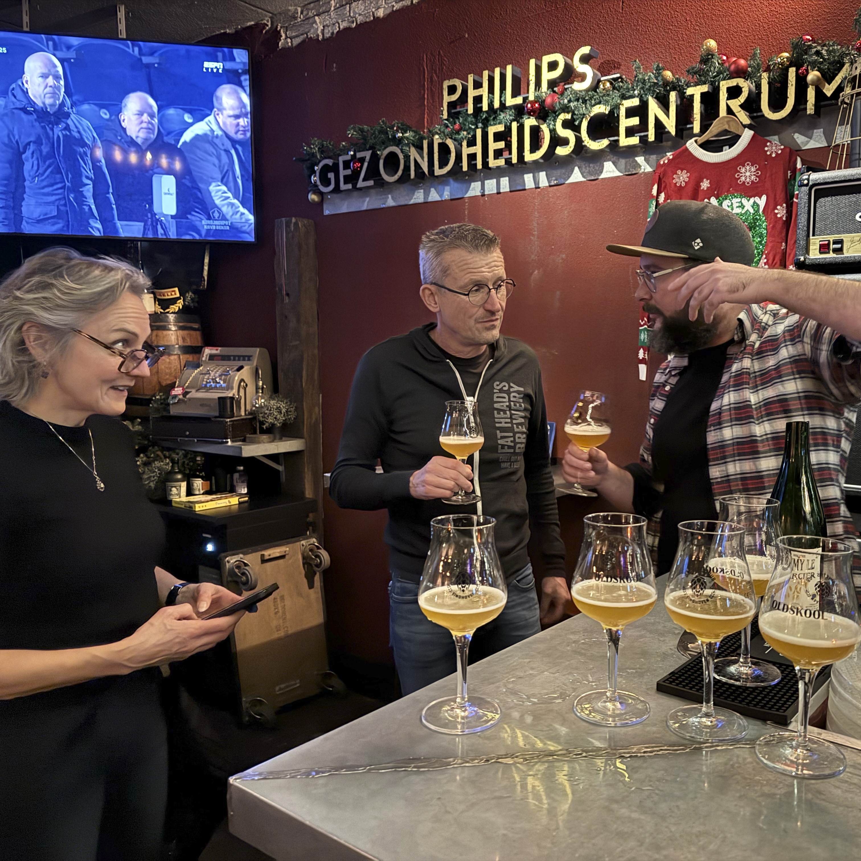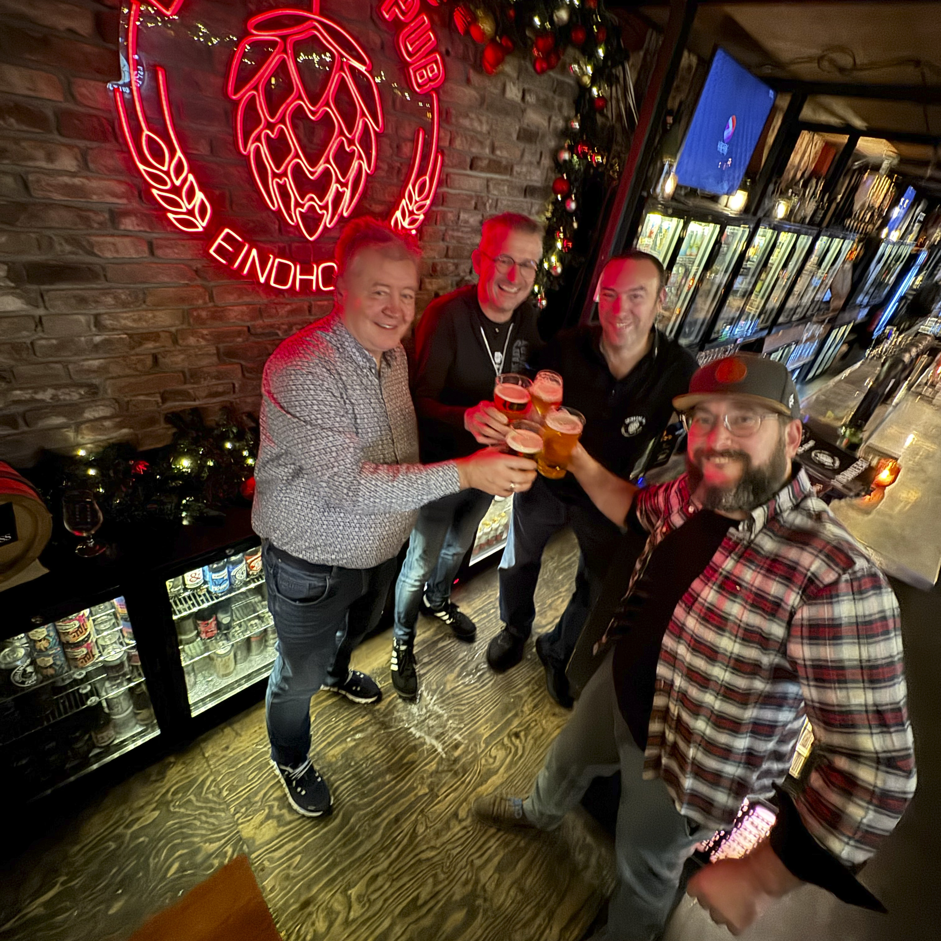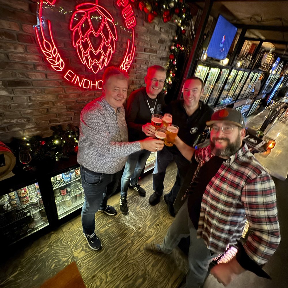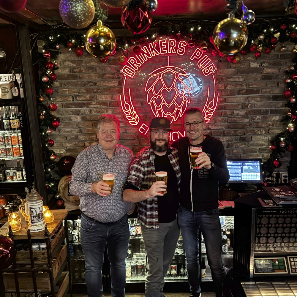 Unsere zwei Chefs auf großer Fahrt in den Niederlanden! Am Mittwoch, 3.12.2025 ging es los mit Station 1: Besuch bei unserem Stammgast, Freund, Collab-Partner UND Vize-Weltmeister der Biersommeliers Dennis Kort und seiner Oldskool Brewery in Eindhoven. Am Abend gab es ein Treffen in Dennis' Kneipe, dem "Drinkerspub". Roland und Ossi trafen sich dort mit Dennis und seinen Kollegen und Freunden von der Gooischen Bierbrouwerij. 1000 verschiedene Biere - davon 30 vom Fass - umfasst die hammergroße Bierauswahl im Drinkerspub. Wie viele davon verkostet wurden, bleibt ein Geheimnis. Jedenfalls war es ein fröhlicher, geselliger und informativen Abend mit Dennis und Co.