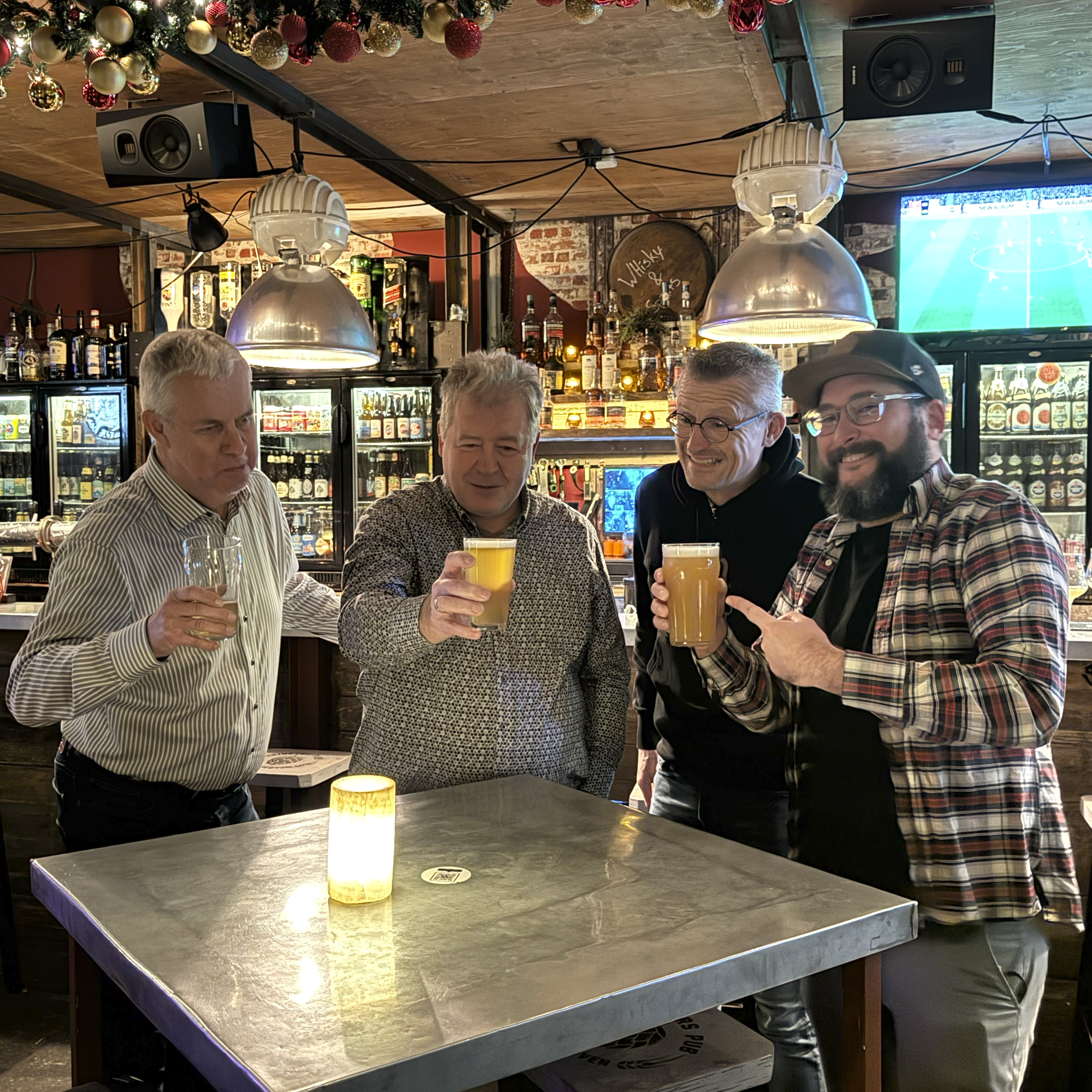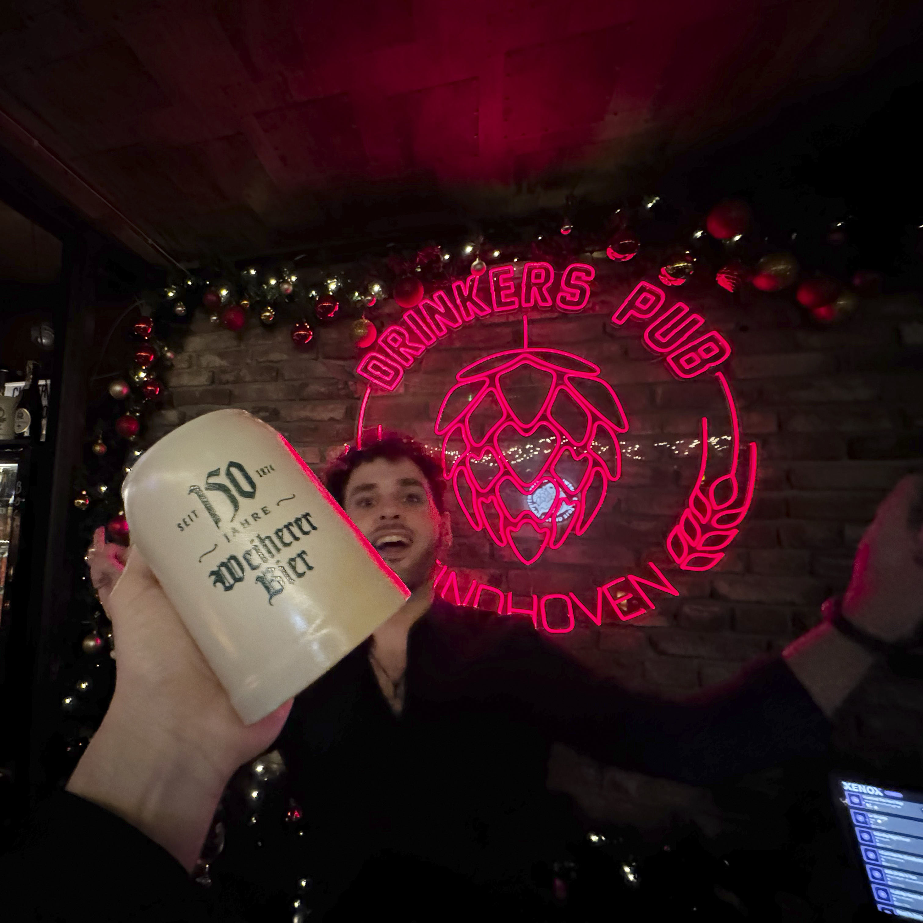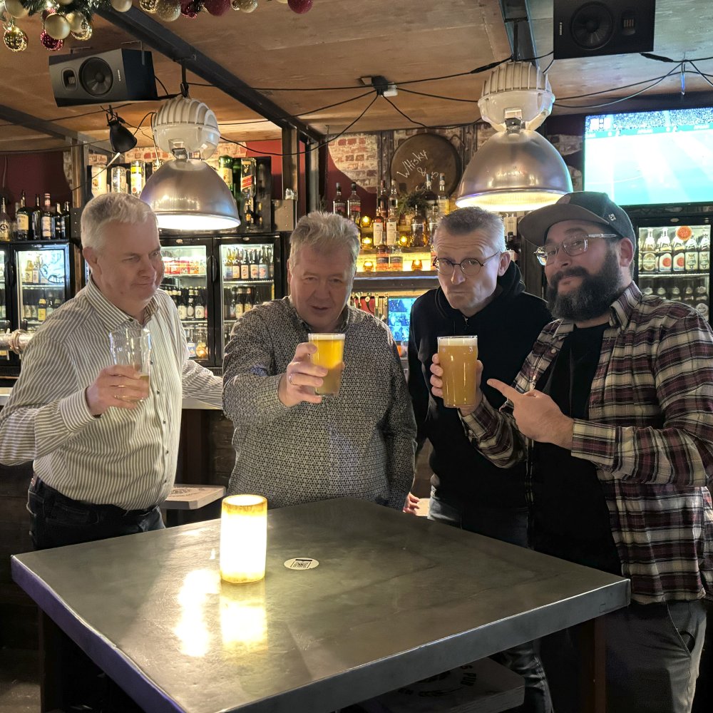 Unsere zwei Chefs auf großer Fahrt in den Niederlanden! Am Mittwoch, 3.12.2025 ging es los mit Station 1: Besuch bei unserem Stammgast, Freund, Collab-Partner UND Vize-Weltmeister der Biersommeliers Dennis Kort und seiner Oldskool Brewery in Eindhoven. Am Abend gab es ein Treffen in Dennis' Kneipe, dem "Drinkerspub". Roland und Ossi trafen sich dort mit Dennis und seinen Kollegen und Freunden von der Gooischen Bierbrouwerij. 1000 verschiedene Biere - davon 30 vom Fass - umfasst die hammergroße Bierauswahl im Drinkerspub. Wie viele davon verkostet wurden, bleibt ein Geheimnis. Jedenfalls war es ein fröhlicher, geselliger und informativen Abend mit Dennis und Co.