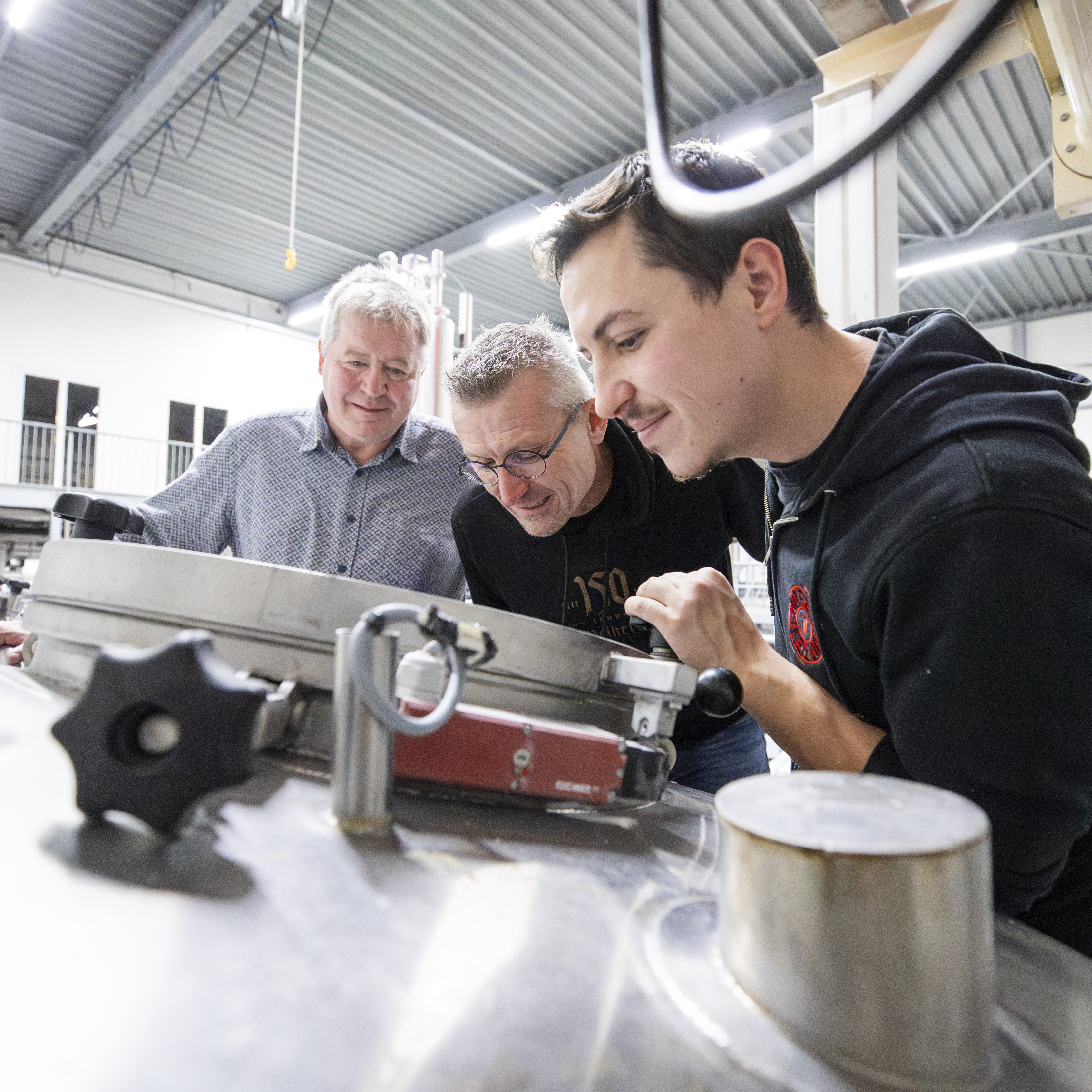 Die 2. Station des Niederlanden-Trips führte Roland und Ossi am Donnerstag über das wunderschöne Amsterdam nach Haarlem zur Jopenkerk Brauerei. Es handelt sich um eine der angesagtesten Craftbeer-Brauereien der Niederlande! Und das Besondere ist, sie befindet sich in einer ehemaligen Kirche. Gemeinsam mit dem Chef der Brauerei, Michael Oderman und dem Brauer, Alessandro Stanojkovski haben Roland und Ossi ein Rezept für ein untergäriges Schwarzbier entwickelt und einen Gemeinschaftssud eingebraut. Den Spalter Select-Hopfen haben unsere Chefs hierfür extra aus Franken mitgebracht. Wir freuen uns schon jetzt auf das Ergebnis - in ca. 6 Wochen kann das Schwarzbier bei uns in der Gaststätte in Weiher vom Fass probiert werden! Zum Abschluss gab es am Donnerstag Abend noch eine Verkostung der Weiherer Biere, zu der sich auch unser Kunde Tim Janssens von Drinkgoed aus Amsterdam angeschlossen hat. Roland und Ossi hatten zwei sehr schöne Tage in den Niederlanden mit vielen informativen Gesprächen sowie geselligen und fröhlichen Stunden zusammen mit echten (Bier-)Freunden. DANKE an Dennis Kort für die Einladung, an Jopenkerk für das geniale Einbrauen unseres Gemeinschaftssuds und alle Beteiligten für die zwei schönen Tage. Wir freuen uns schon auf ein Treffen bei uns in Weiher.