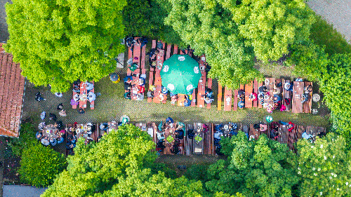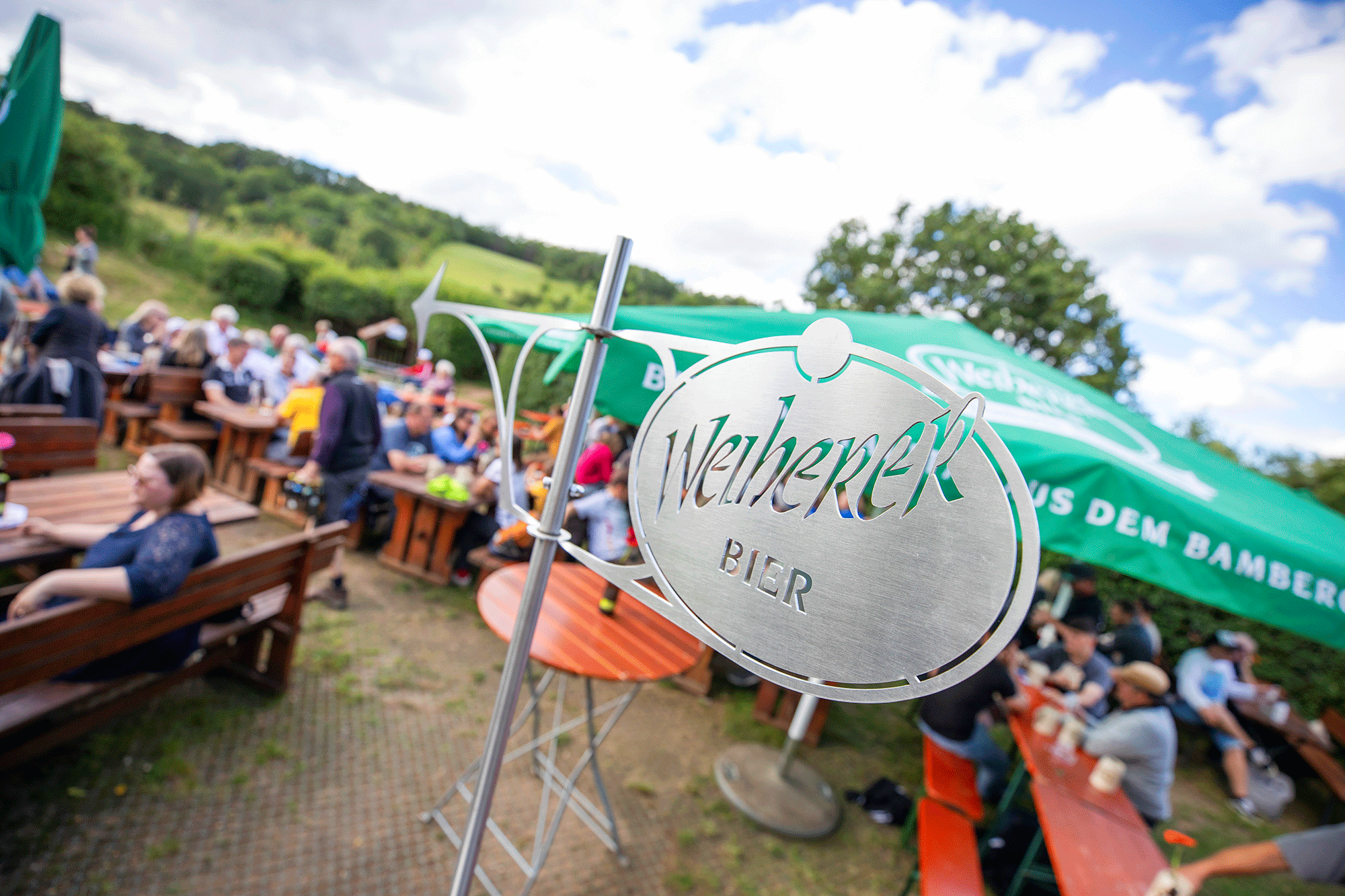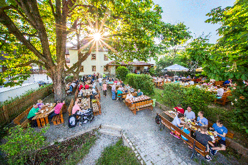 Es sind nicht nur die schattenspendenden Kastanienriesen, die den Weiherer Biergarten schon 2005 zum Bierkeller des Jahres gemacht haben. Es ist die Atmosphäre - umgeben von Natur und Idylle. In den Sommermonaten täglich außer mittwochs geöffnet, finden 250 Gäste immer ein Plätzchen - egal ob im unteren schattigen Bereich oder im obigen sonnigen.