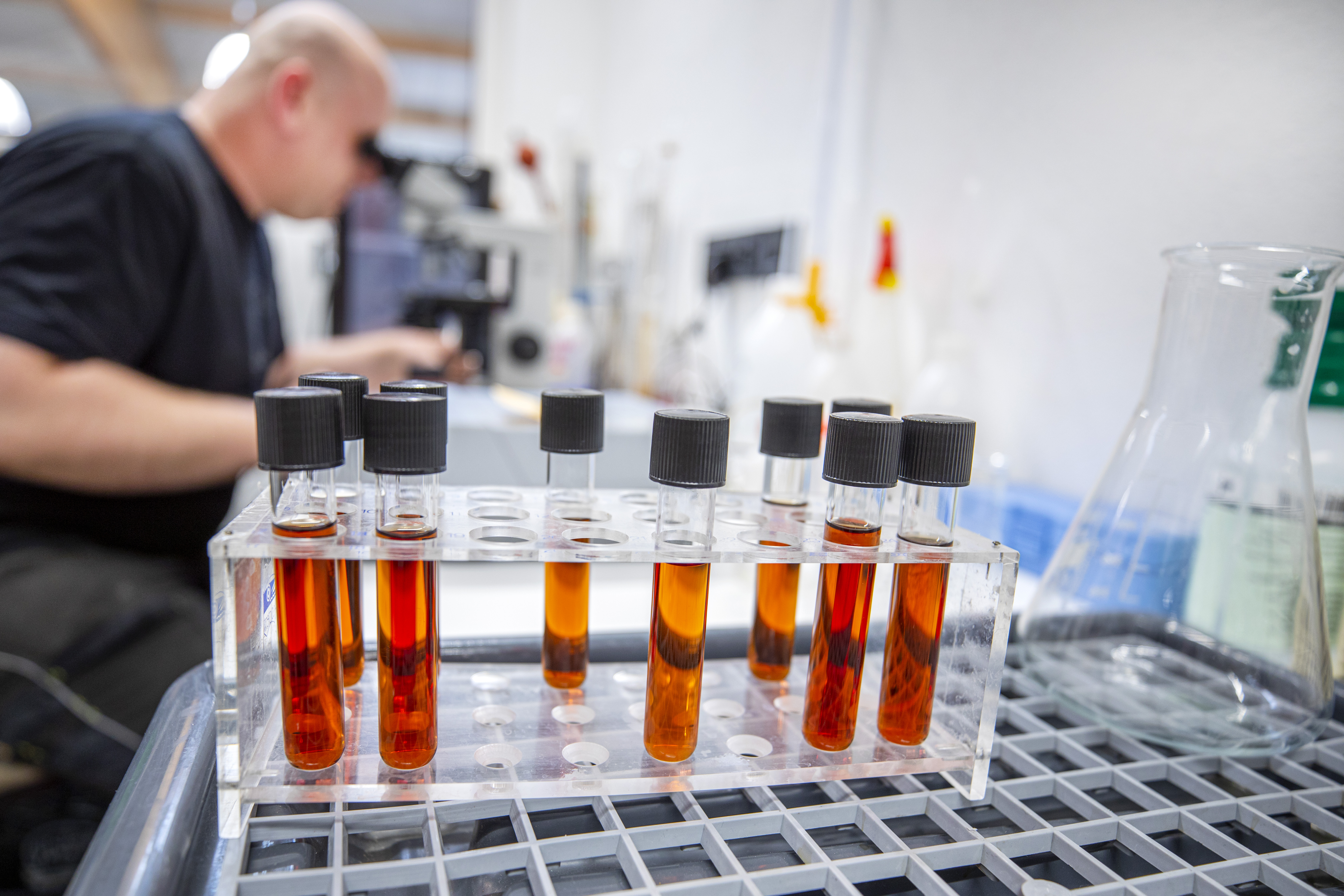 In unserem Labor messen wir Kohlensäure, Stammwürze, Alkoholgehalt, PH-Wert und die Hefezellen unserer Biere. Auch typische mikrobiologische Untersuchungen sind an der Tagesordnung. Der Qualitätsanspruch an jedes einzelne der Weiherer Biere ist hoch, daher sind regelmäßige Kontrollen obligatorisch und stellen für uns einen wichtigen Bestandteil innerhalb der Produktion dar.